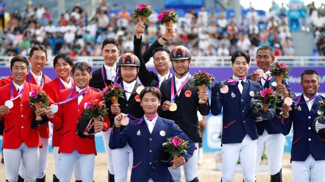 中国马术运动实现了亚运会金牌零的突破。名将华天勇夺马术三项赛个人金牌,他还与队友梁锐基、包英凤、孙华东合作夺得马术三项赛团体金牌。
