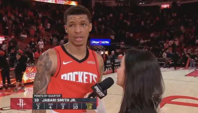 今天史密斯13投6中,三分7中2,罚球6中4,得到18分7篮板。而过去6场比赛,小贾的三分为41中7,命中率仅为17.1%。今天最后时刻小贾终于开窍,连续命中2记三分,和1记中投,没有这8分火箭赢不了,毕竟最后时刻火箭领先7分被公牛反超1分,杜兰特看起来已经弹尽粮绝,和之前比赛差不多疲惫。