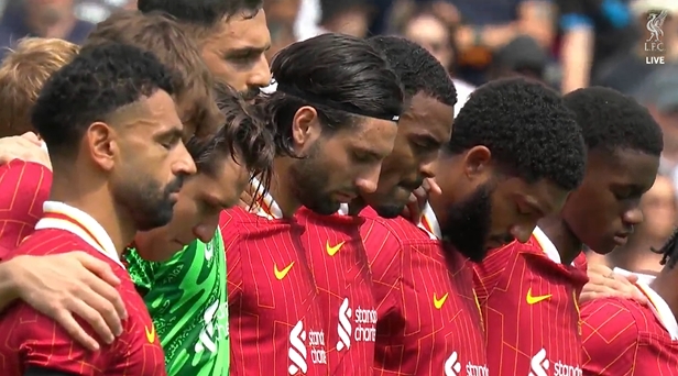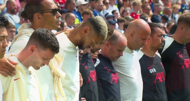 普雷斯顿队长向利物浦球迷看台献花,双方球员集体为若塔兄弟默哀
